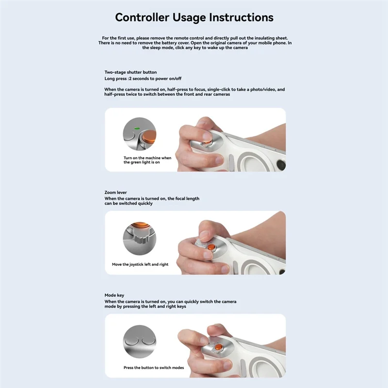 It is compatible with iOS and Android systems and connects to the phone's camera app via Bluetooth, no additional downloads required